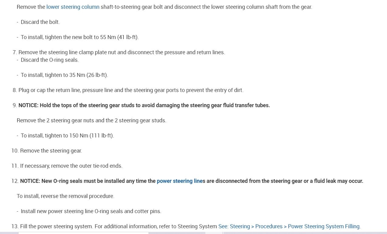 installed a rebuilt rack and pinion saw on websites for the 2 bolts attaching it to the frame.