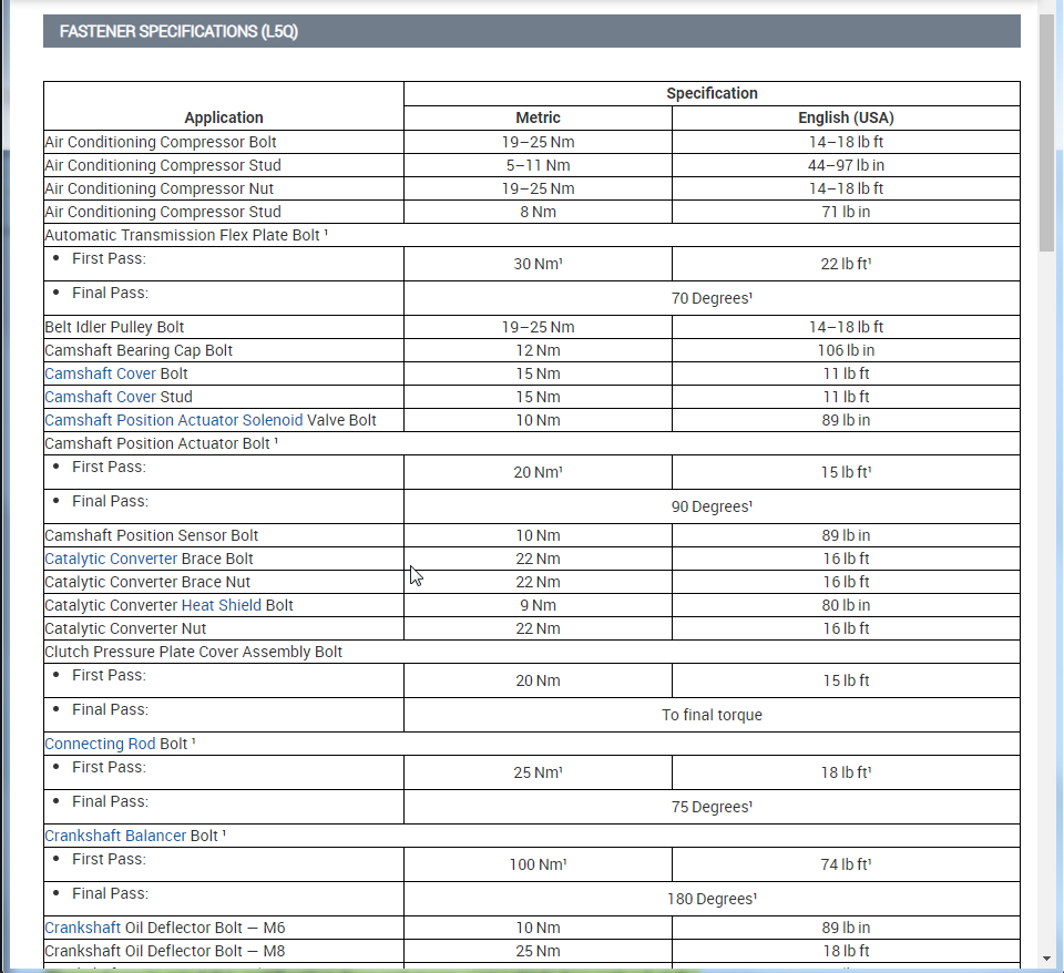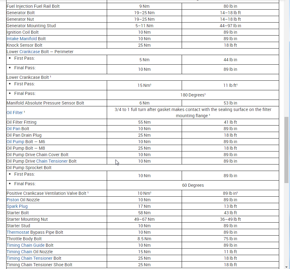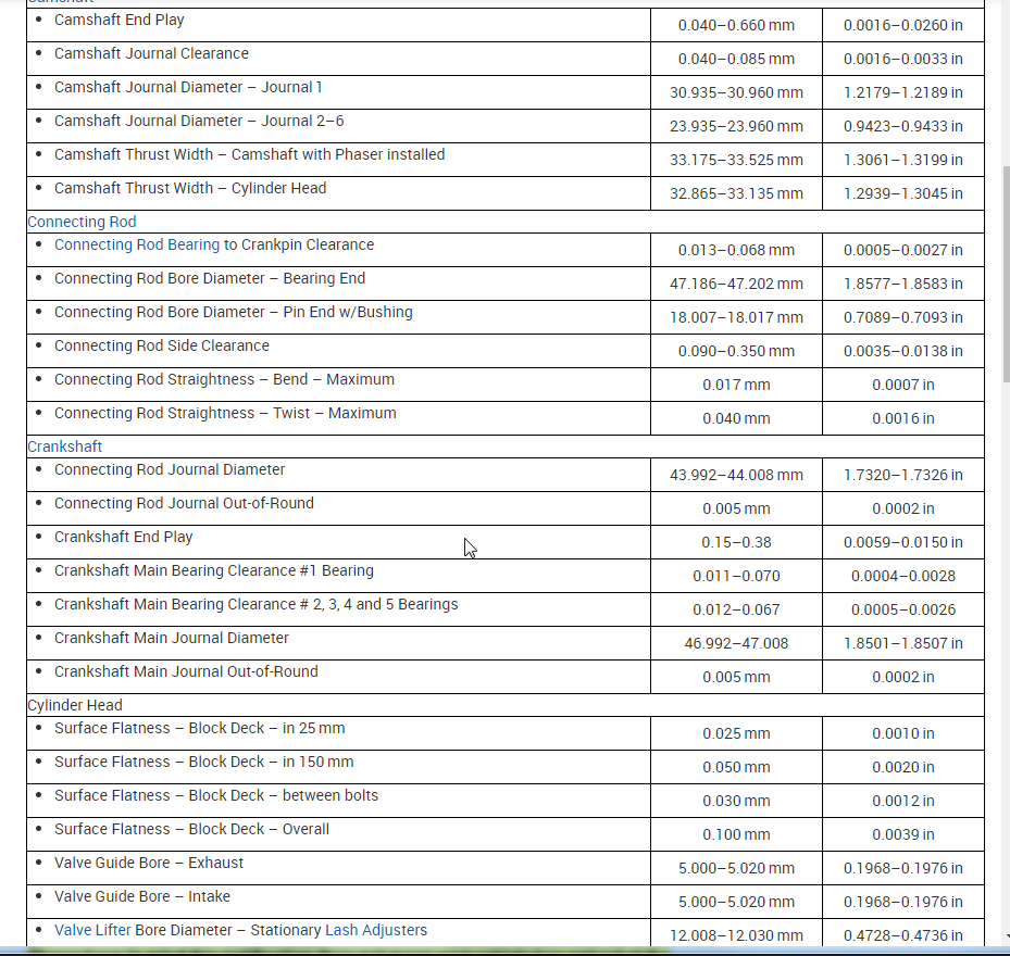 torque specs needed for main and big end bearings and head bolds and camshafts