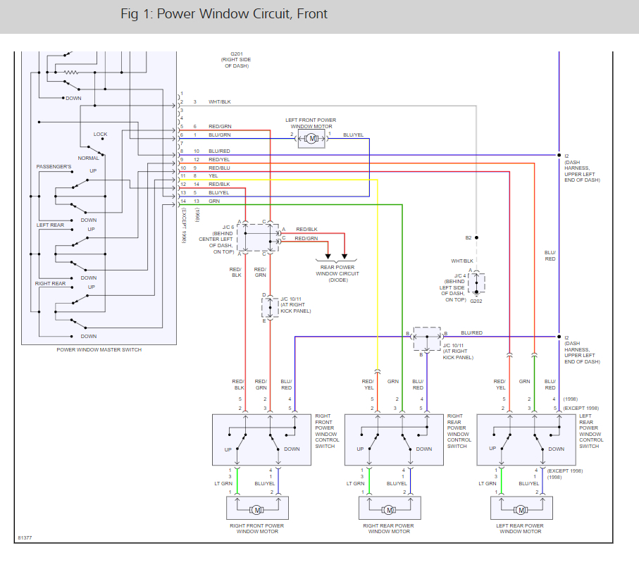 I was doing some work on the plastics today, and had to pull apart the dash and the switch holders for the power windows. When i went to put everything back together, my passenger side front, both the back and the rear power windows will not work. The driver side and the sun roof work, as well as all lights, and the radio and the power locks. I checked and recheck, and check 4 or 5 times more to make sure everything was connected, and still no power windows. What can this be?