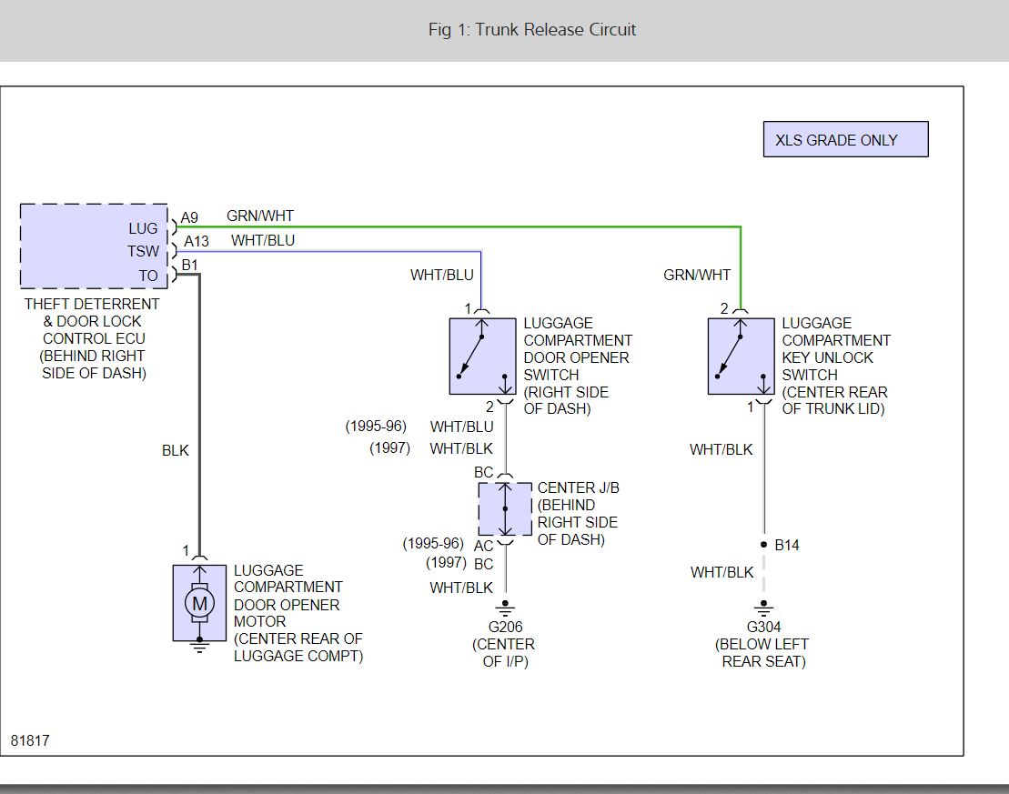 The reason I want to do this is to simplify opening the trunk. To reduce the chances of theft from the trunk due a break-in of the passenger compartment, one must disable the trunk release button on the dashboard by pushing a button in the glove compartment and them locking the glove compartment. Unfortunately, pushing this glove compartment button also disables the trunk release button on the wireless remote control. The trunk does not have a key hole. Thus, with the button in the glove compartment set and the glove compartment locked, it's a pain to put the laptop or other valuable item used during a trip into the trunk whenever making a stop.