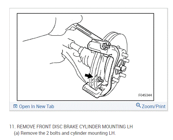 Once the brake caliper is removed, there are two bolts on the rear of the steering knuckle that hold the caliper mount on. Remove the bolts, remove the mount, then remove and replace the caliper.