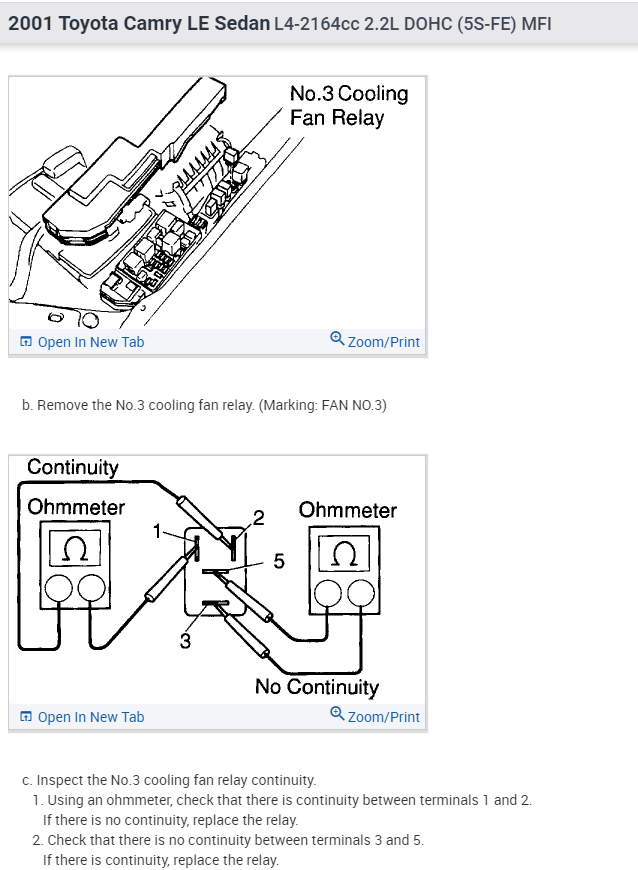 I have attached diagrams on how to test the relays as well as the temperature sensor and the fan replacement procedure below for your reference.