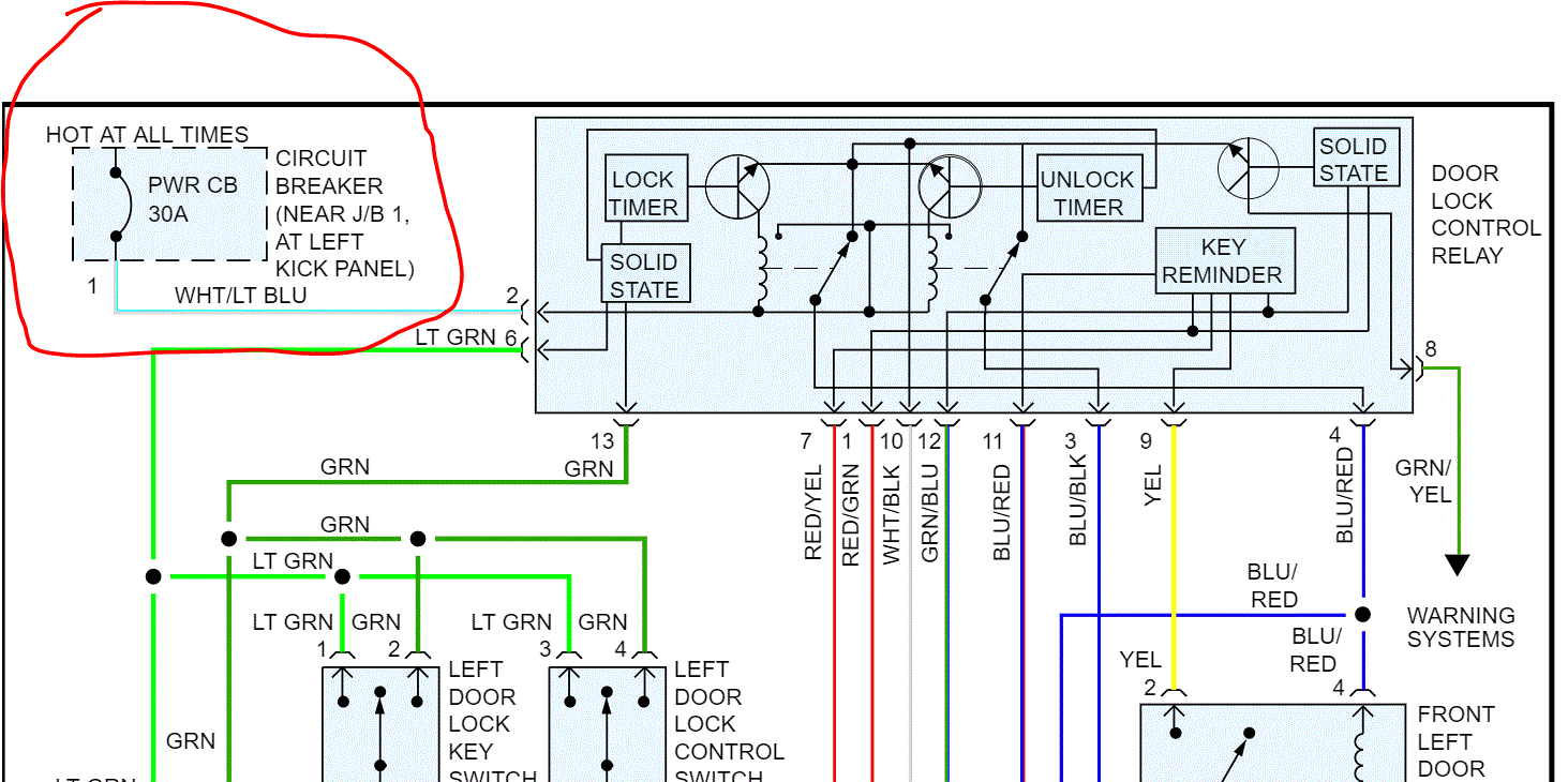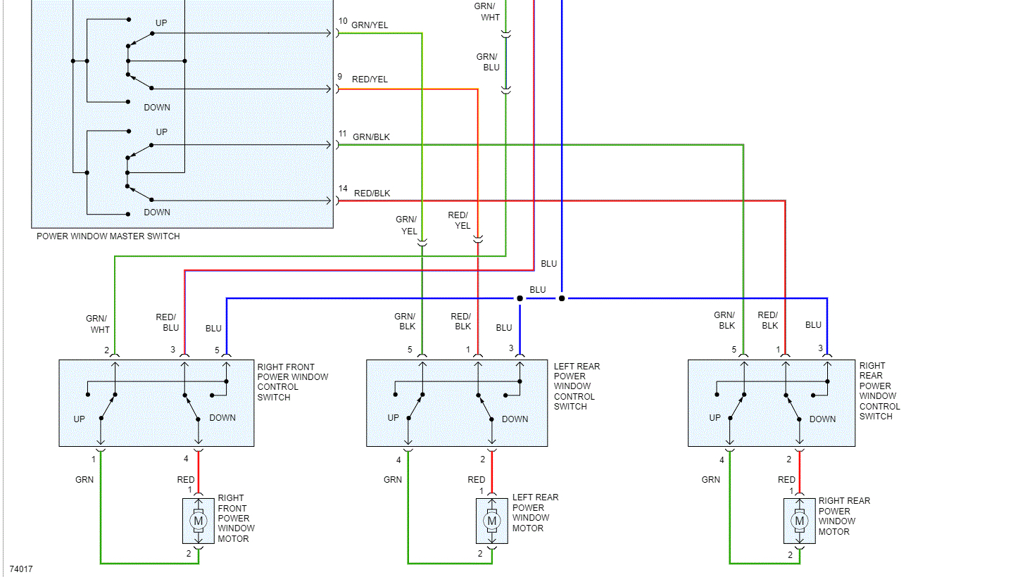 Now open the drivers door panel at the master switch check for power at the blue wire, turn key On. Do you have it-let me know