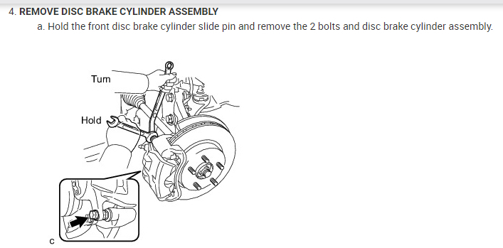 REMOVE FRONT DISC BRAKE CYLINDER SLIDE PIN
