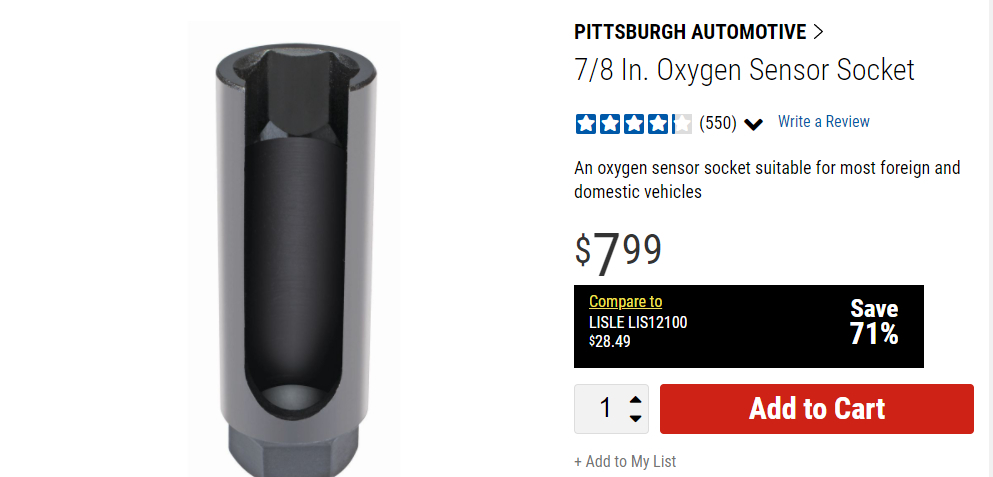 Getting a code indicating it needs replacing. Sensor is a Bosch Part#15984. The sensor is made with what I would call a heat shield around it that won`t allow a sensor socket to get to the sensor`s 7/8`s nut. Is there a special thin walled sensor socket available[img:54d40dee85]http://www.2carpros.com/forum/automotive_pictures/213950_IMG_0176_1.jpg[/img:54d40dee85] or did Toyota do this by design to force people to bring the car to a dealership because they have a special tool which is not available to the public ? Anyway I haven`t been able to find a sensor socket that will work in this application. They are all too thick walled. Thanks in advance.