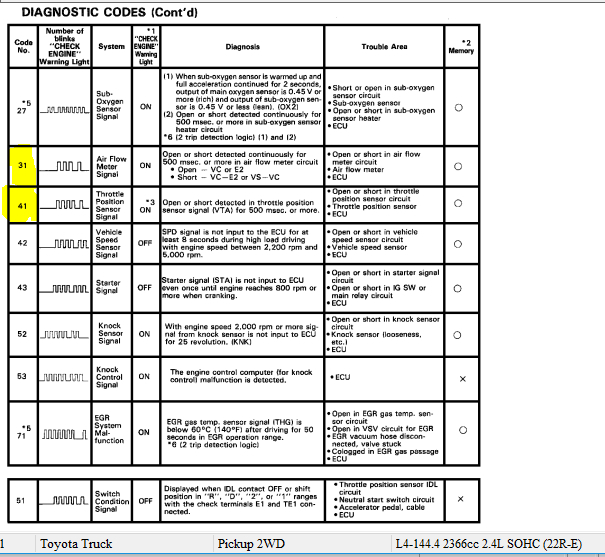 My 92 toyo 4x4s check eng lite comes on when eng. temp usually reaches certain temp.Then it seems to misfire.No problems starting or running for about first 10-15 min.Light does go off when im coasting then returns apon exceleration.Did diagnostics and came up with airflow meter.Could it be eng. coolant temp. sensor?Temp gauge is staying about the 1/4 mark.Shouldn't it be at about 1/2? Very confusing.Any one with help they could give me.Thanks,Dennis in Olympia,Wa.
