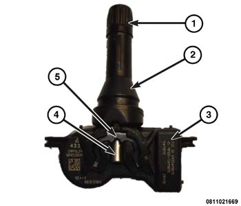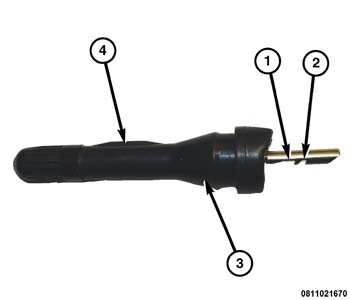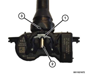 When installing a new valve stem (2), do not install it with the sensor (3) attached. If it is a new sensor, separate the valve stem from the sensor first then install the components separately.