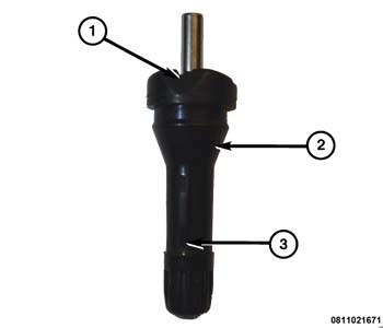 Replace the valve stem (2) assembly with each tire change or when the tire is removed from the wheel.