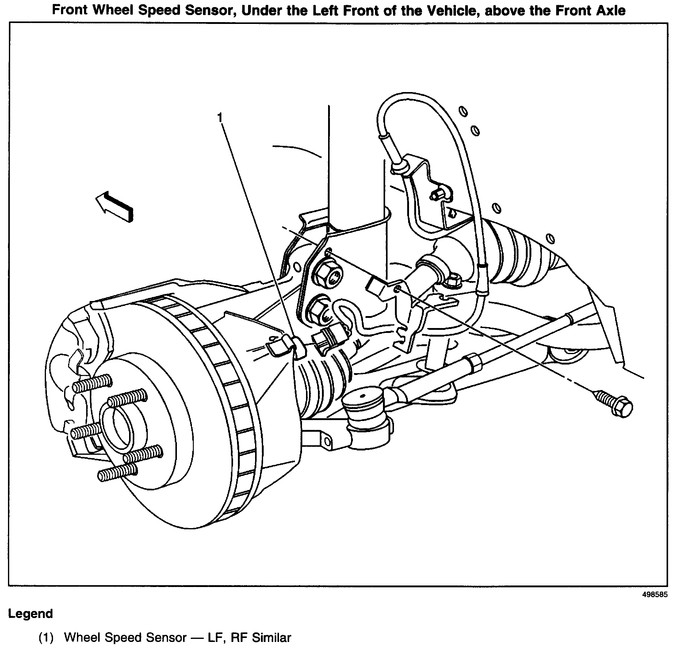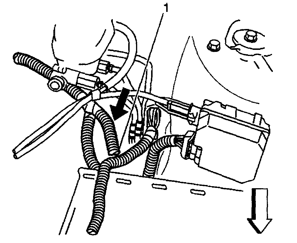2. Route the wheel speed sensor jumper (1) through the engine compartment to the wheel well.