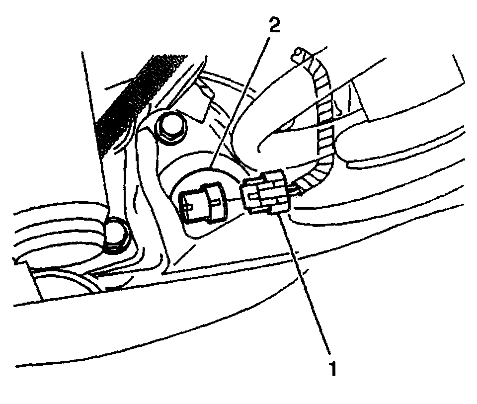 4. Remove the wheel speed sensor connector (1) from the wheel speed sensor (2).