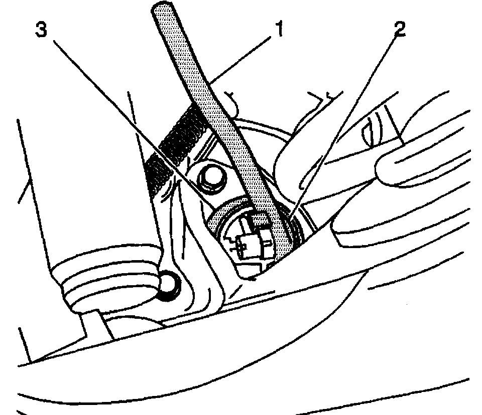 3. Insert the J 44252 ABS sensor installer (1) onto the wheel speed sensor (3).