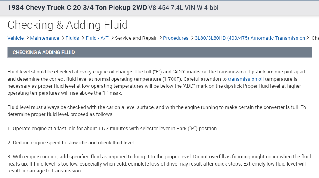 I'm trying to determine the correct length of dipstick I need for my transmission fluid level. The engine is a 454 and the transmission is a THM400 3-speed. The stick I have now is 32" long, not including the handle. I tried to look online but got varying answers with varying lengths. Can you help confirm the correct one?