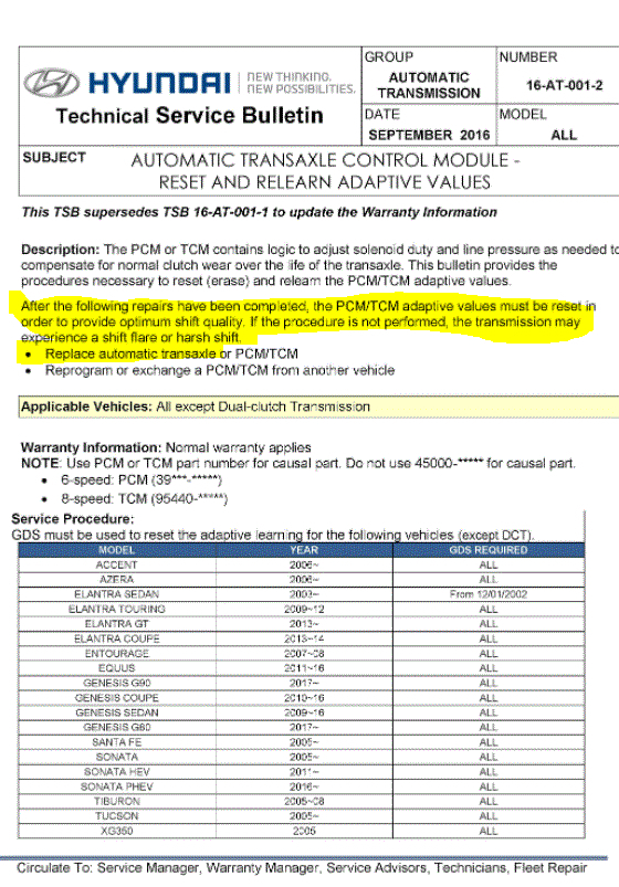 This was only a technical service bulletin. Is there someone that you know that can try the reset? Also, how long did the new transmission work?