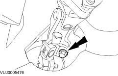 16. Loosen the left-hand front subframe rear mount retaining bolt.