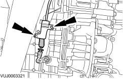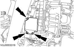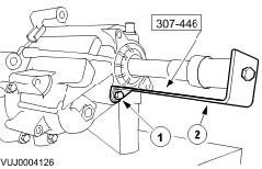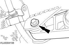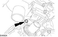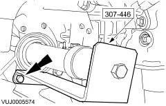 27. Using the special tool, loosen the catalytic converter mount bracket, top left-hand retaining bolt.