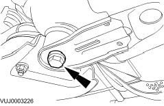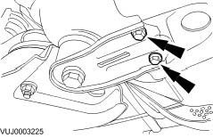 15. Remove the right-hand front subframe rear mount retaining bolt.