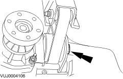 1. Remove the lower arm ball joint retaining nut and bolt.