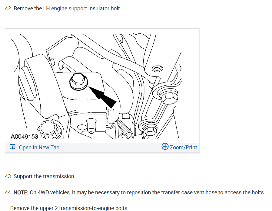 So, it says you will need to reposition the transfer case is all and the CV axles stay in the car. I would start by disconnecting the battery and draining the coolant and engine oil and removing the oil filter. Also, you will be leaving the A/C compressor and power steering pump in the car, you will need an engine hoist to pull the engine out.