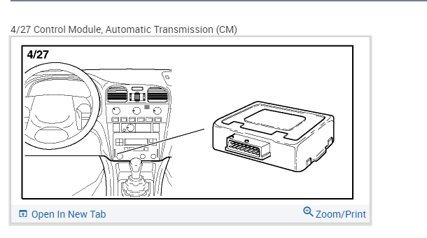 Transmission control module location.