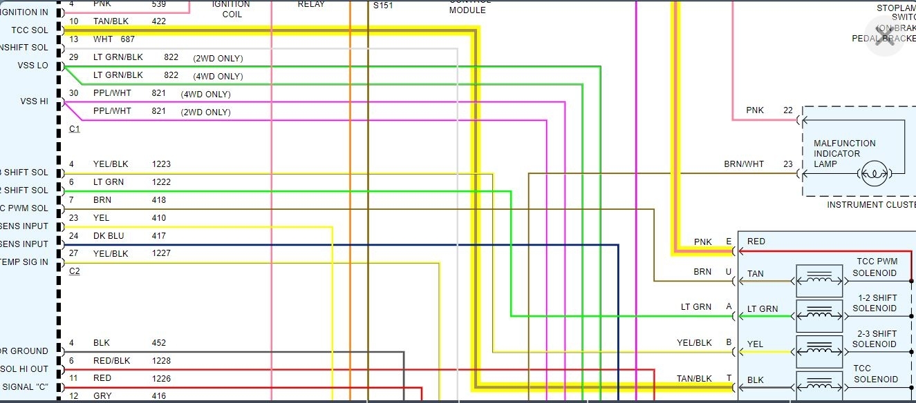 So I have a 1993 Chevrolet with a 4L60E and the transmission went out so I took a transmission out of the truck that I described above the only issue was that it was cable shift and electronic shift for overdrive so I had to get a floor board shifter in order to shift it and now the only issue is it won’t go into overdrive, so I was curious if you could show me a wiring diagram for the connectors on the drivers side of the transmission so I can see if I could wire up a toggle switch for overdrive?