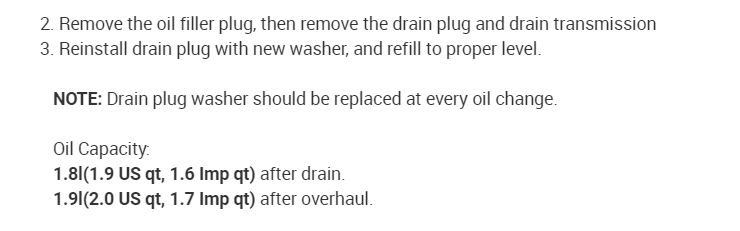 4WD .................... 2.3 liters 4.8 pints