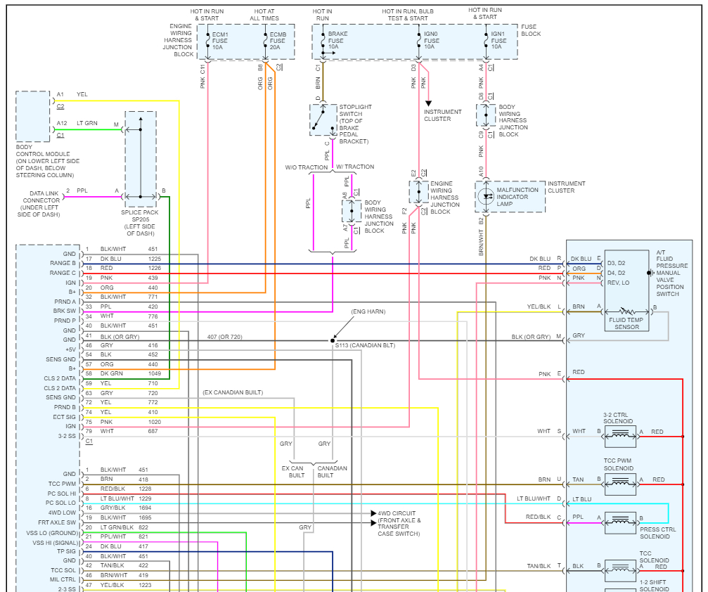 I have the vehicle listed above Z71 5.7L. codes P0740, p0753, p0785, p1860. It has a transmission in it that was refurbished 2 years ago. I installed a new create motor about a month ago. I check shift solenoid A and B. Both are working and receiving between 20 and 25 olm's about 21.7 to be exact. What are some things I can do to fix? Working on a budget.