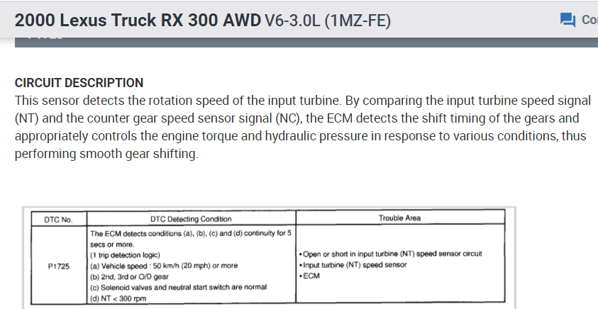 I've attached picture diagnostic steps below relating to the trouble code P1725 you provided.Hope this helps and thanks for using 2CarPros.