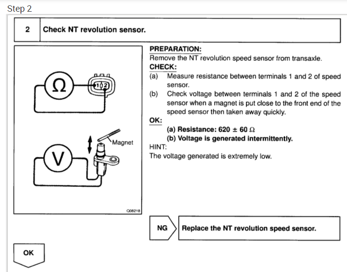Hi, thanks. I removed the NT speed sensors and tested it's resistance it read 667 and 686 respectively, the voltages was extremely low. Is this a good sign? So I just cleaned it.