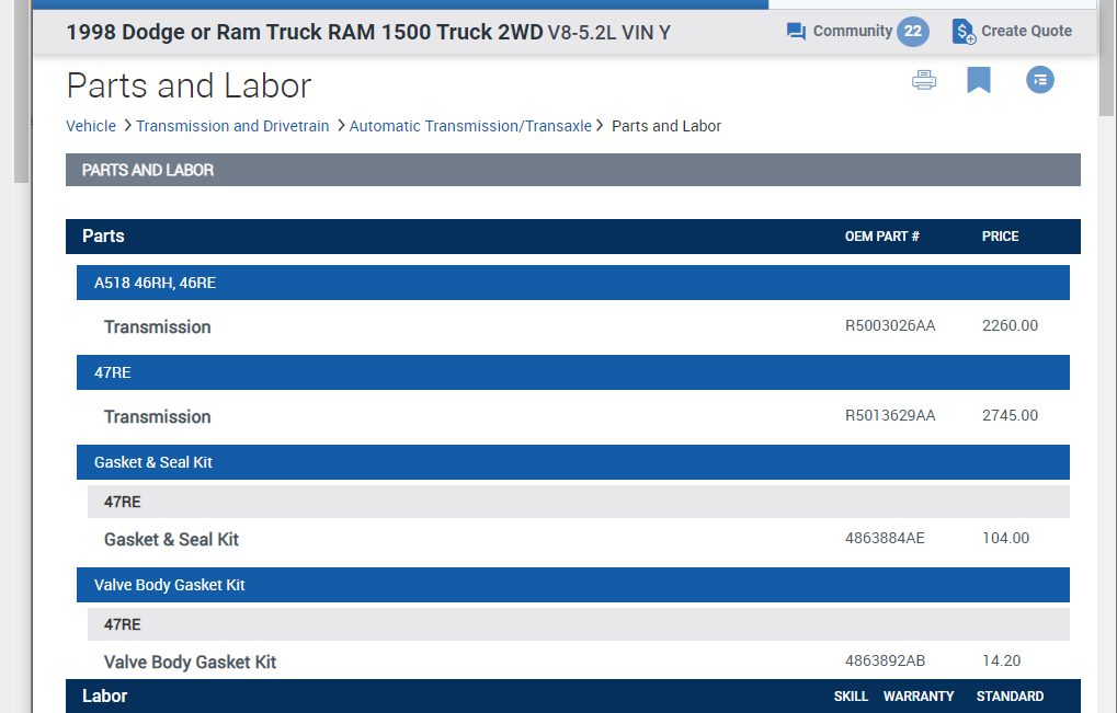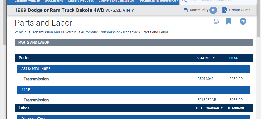 Next, it was a little confusing what you are trying to do. Basically you are looking to make the Dakota a 2WD using the transmission out of the Ram? You asked if the transmission and transfer case will interchange, but if you are making it a 2WD then we don't need to worry about the transfer case, correct?