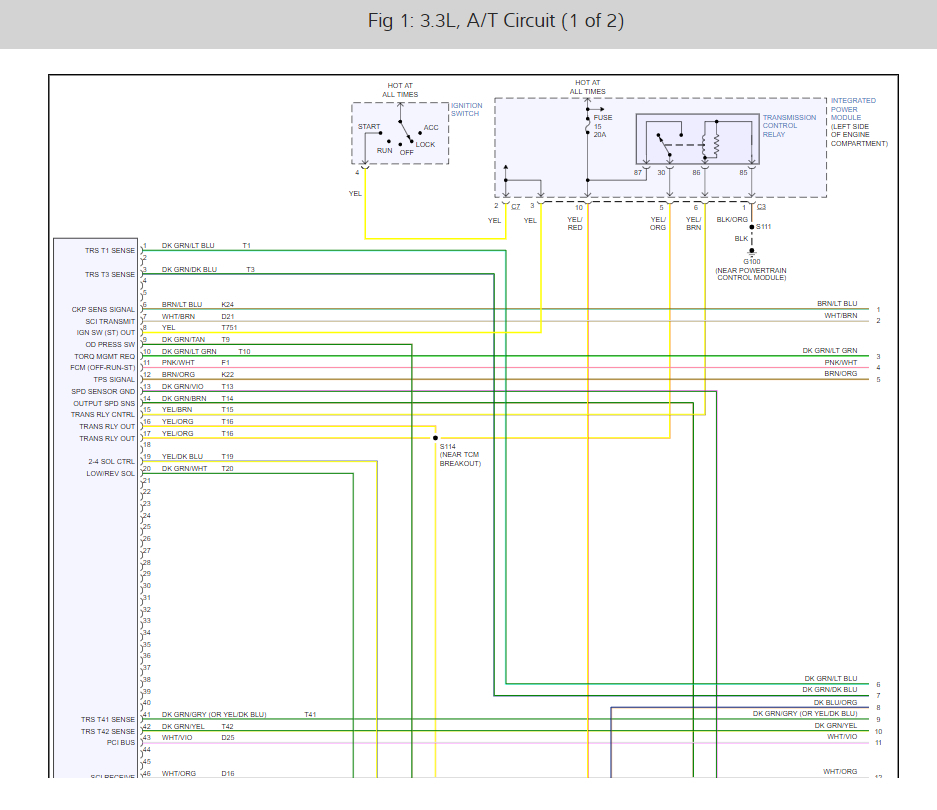 Car doesn't move on any gear. Fluid is sufficient, new solenoid pack and new input/output sensors.Would like to troubleshoot the harness from the IPM to the 80 pins PCM. What I need is the diagram for the wiring.