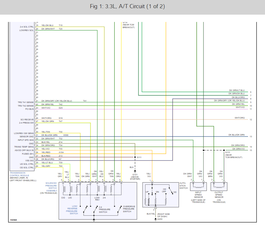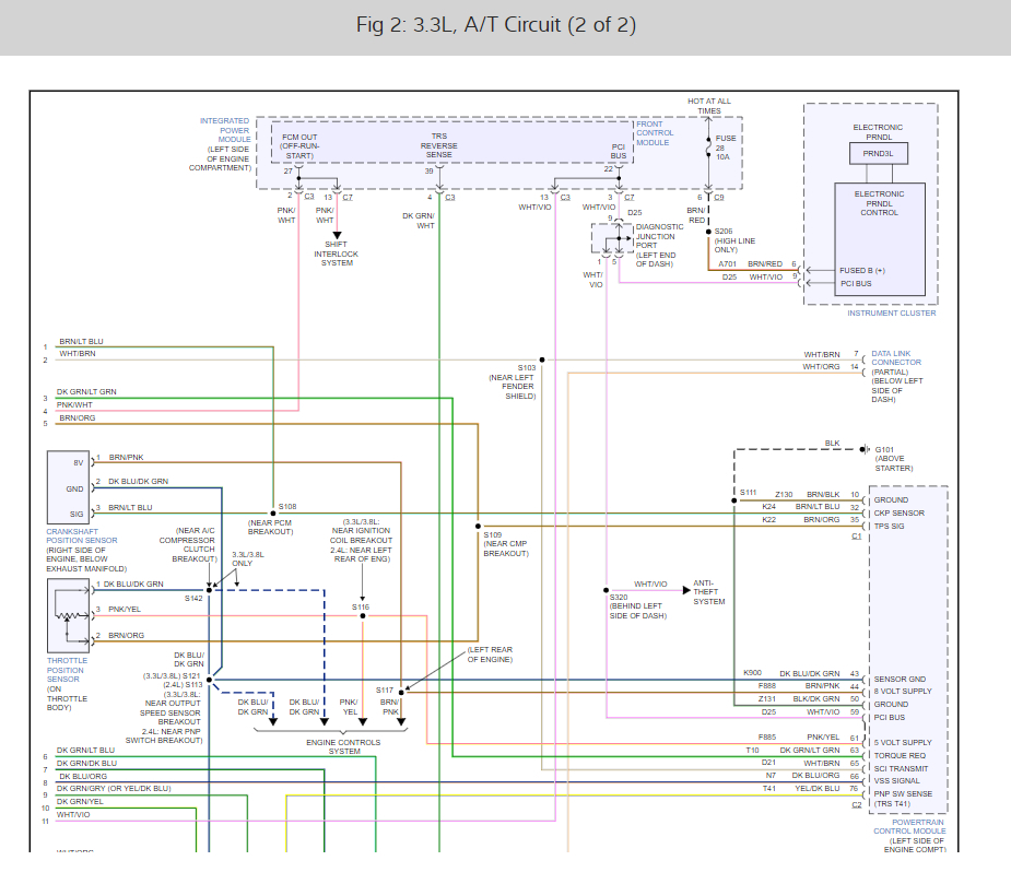 Turn the key, engine runs okay, shift to drive or reverse and no movement at all. I assume can be mechanical or electrical failure somewhere. I request some help about getting the full engine performance wiring diagram for the van listed above. I'll plan to troubleshoot the integrity of the wiring, relays and 80 Pin computer.