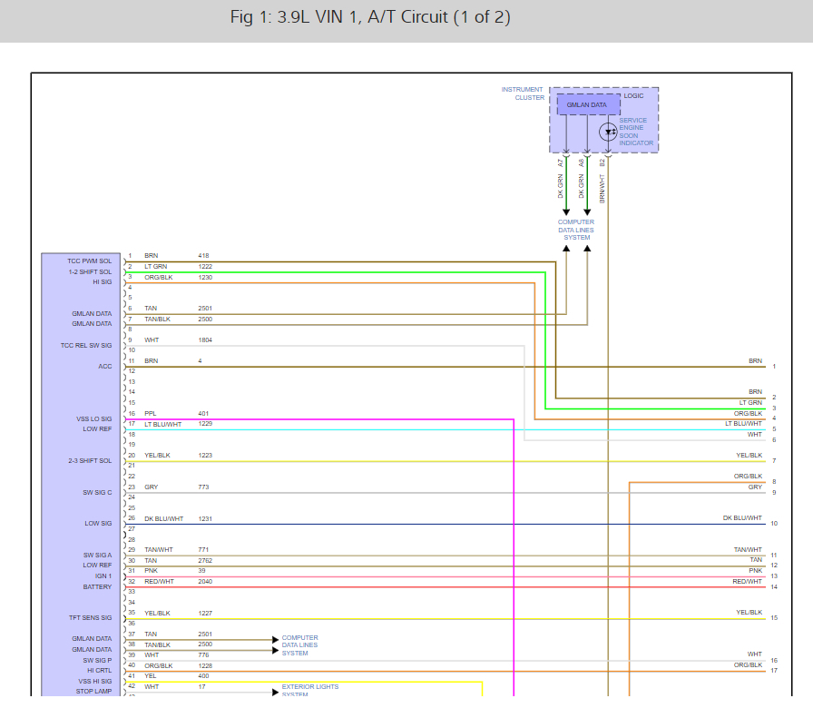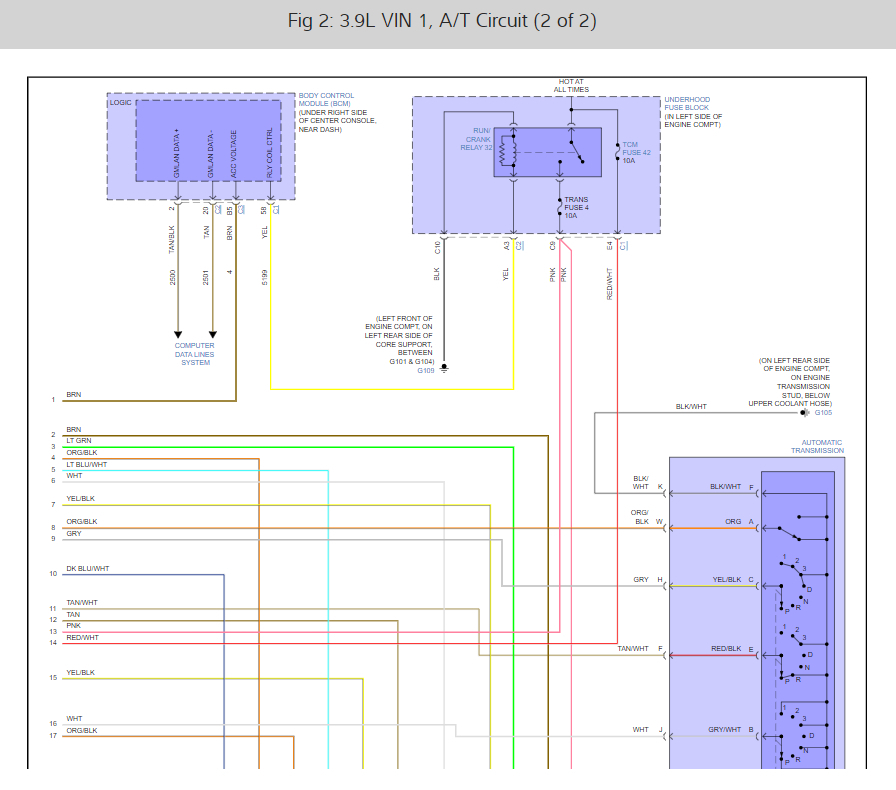What happened? The ignition wire (pink circuit 1339 or simply 39) from TCM 48-way connector pin 31 to transmission harness 20-way connector pin E showed no continuity. Is this normal when the key is in the off position? Does this wire go through a fuse or fusible link? The wiring diagram shows transmission fuse 4 in the junction block but no fusing in the wire in between pin 31 and pin E unless I am not reading the diagram correctly. All other connections showed continuity