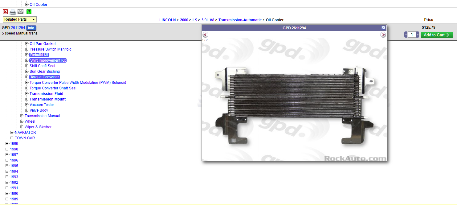 My transmission cooler is located in front of the fan. I am trying to order a new one but there are alot of different sizes. What size came standard on that car?