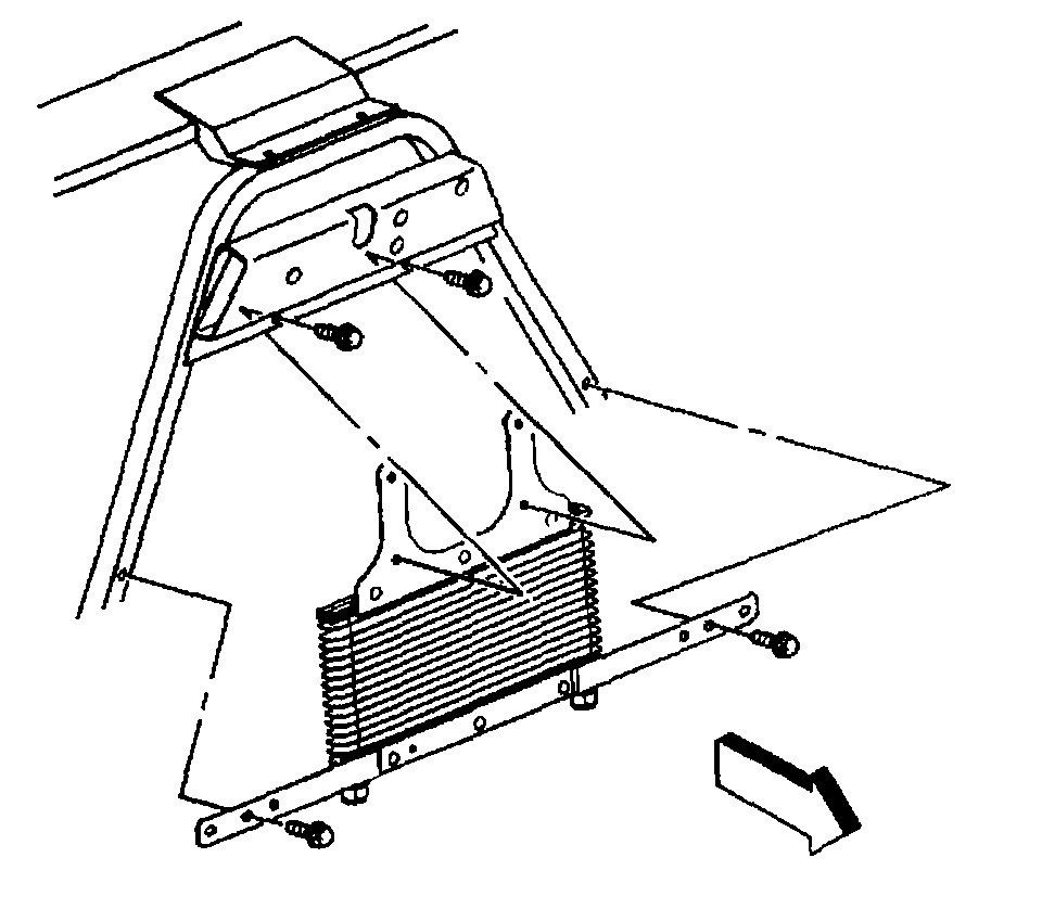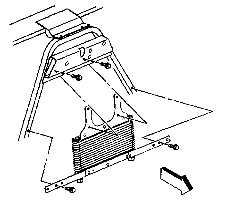 4. For vehicles equipped with the 4.3LL engine, remove the four bolts securing the auxiliary oil cooler to the radiator support.