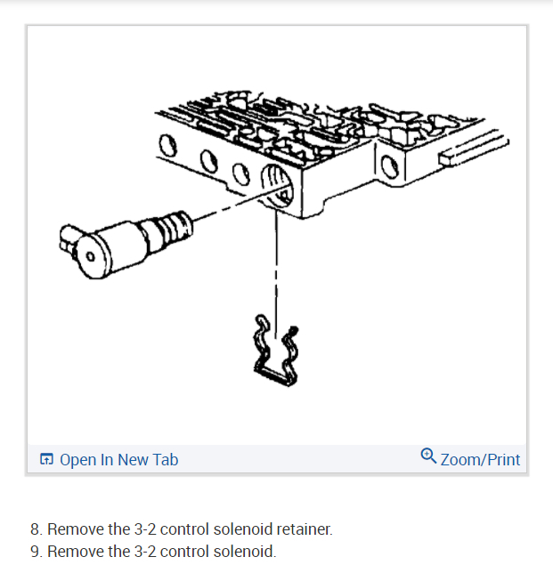 The 3-2 shift solenoid (SS) valve assembly is a normally-closed, 3-port, on/off device that controls the 3-2 downshift. The solenoid attaches to the control valve body within the transmission. The solenoid receives ignition voltage through the OFF/ON/START voltage circuit. The powertrain control module (PCM) controls the solenoid by providing a ground path on the 3-2 shift solenoid valve control circuit. During a 3-2 downshift, the 2-4 band applies as the 3-4 clutch releases. The PCM varies the timing between the 3-4 clutch release and the 2-4 band apply, depending on the vehicle speed and the throttle position.