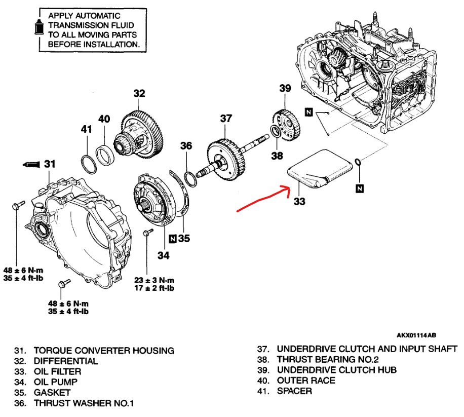 The filter is inside the transmission which cannot be changed unless you take the transmission part. Please check out the images below to see what I am talking about.