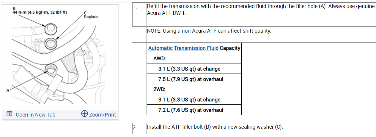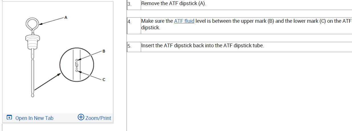 The owner's manual does not give a procedure on how to check the transmission fluid level after changing the fluid. I asked Acura corporate, and they would not answer because they want me to have a dealership check the fluid level. I asked the local dealership and they said "ummm I think it should be checked with engine off". So I want to get the Honda/Acura correct procedure without having to join Honda's service site for $1500. Do you have access to that procedure? The vehicle has a dipstick, so I need to know if the fluid is to be checked with vehicle warm, shift through the gears a few times and then check the dipstick with engine running or engine off. I changed the fluid and had the level set to between the dots on the dipstick with engine off. My Acura TL owner's manual says turn off engine and check after 60 seconds but don't wait more than 90 seconds. But I don't know if the MDX procedure is the same. Thanks.