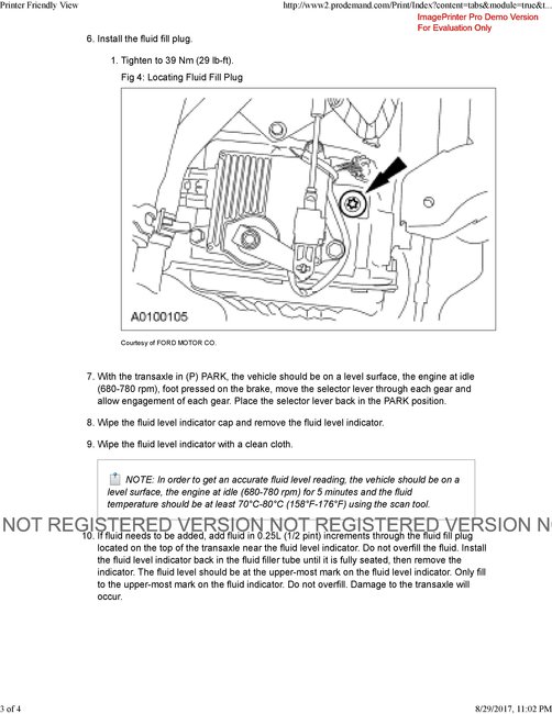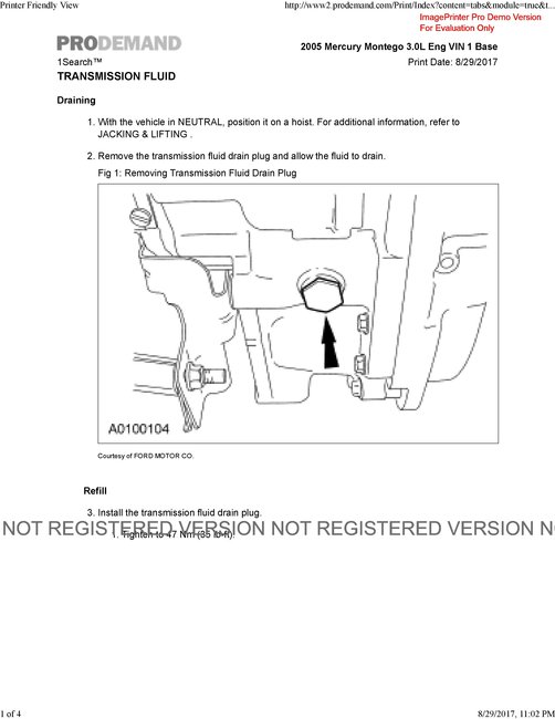 VIN# 1MEFM40105G611724. First I am not sure, if it is a CVT or traditional automatic transmission? I am pretty much suspecting its the traditional one. It has tiny yellow plastic dipstick between transmission and radiator, more easily accessible from underneath the car.