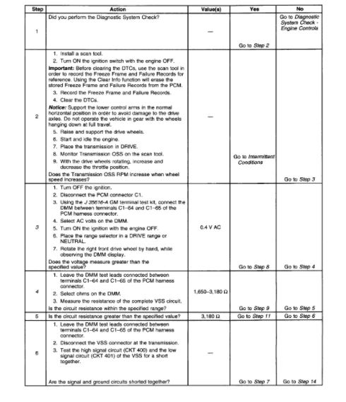 3. This step tests the ability of the VSS to produce an AC voltage. This step also verifies the integrity of the wiring to the PCM.