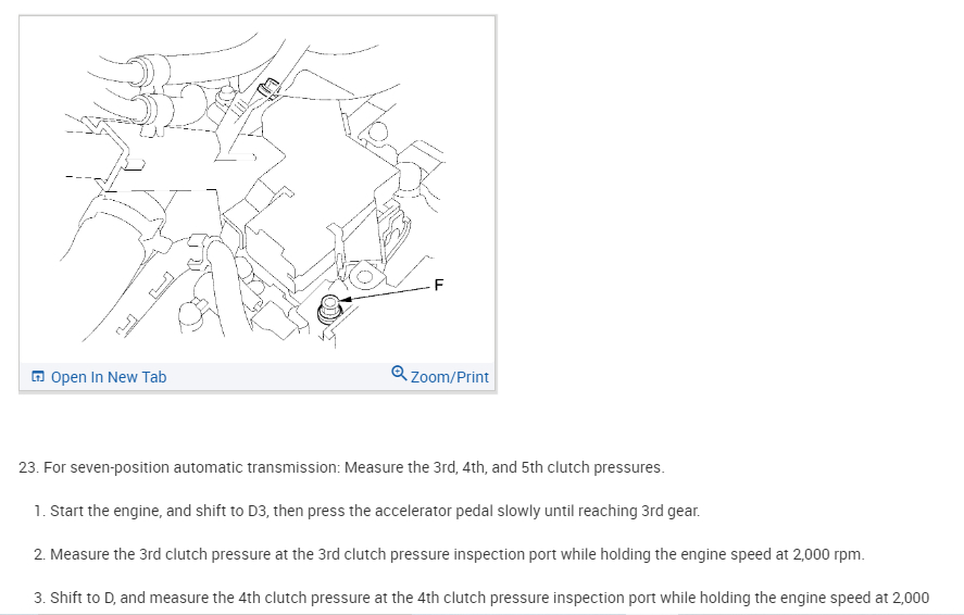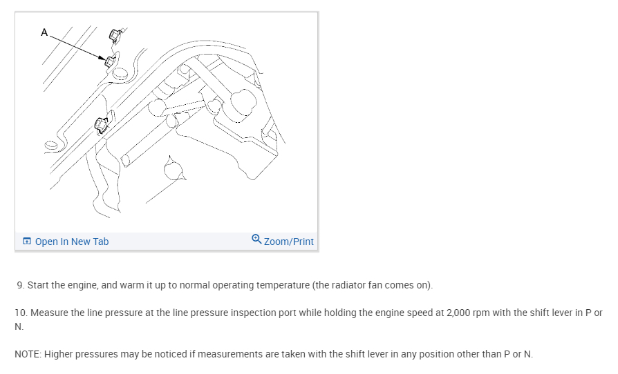 I attached the directions from the manual for testing line pressure, but it is somewhat involved. Take a look through them and let me know if it is something you feel comfortable performing. Keep in mind, scanning the CAN is likely the easier thing to do first.