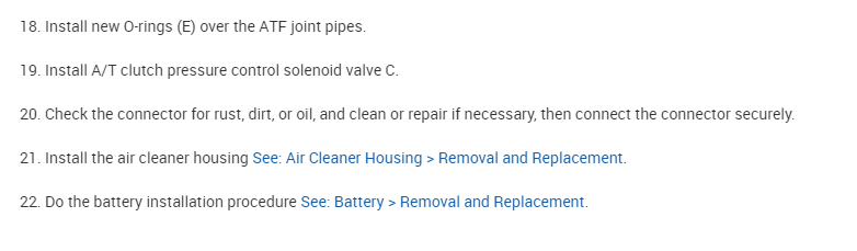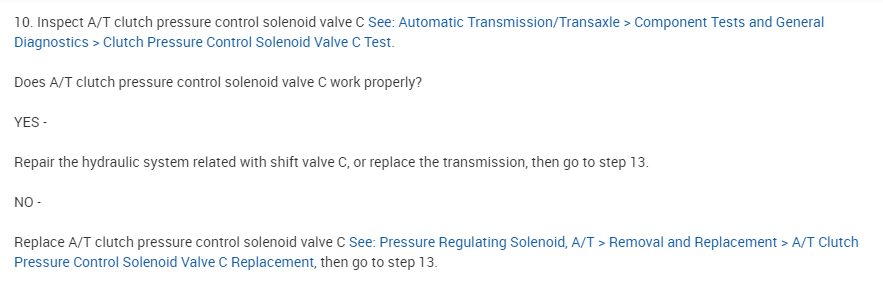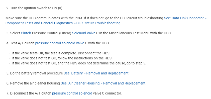 Also, I attached a general diagnostic test below related to the pressure solenoid C. Take a look through it and let me know if you are comfortable performing it. I suggest starting with this solenoid because the other code you have could be the result of this failure.