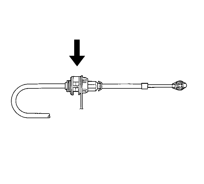 8. Pull the automatic transaxle range selector cable terminal toward the pin on the automatic transaxle range selector lever. The automatic transaxle range selector cable adjuster spring should compress as the terminal is moved toward the pin.