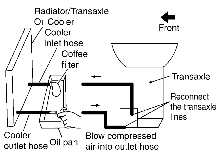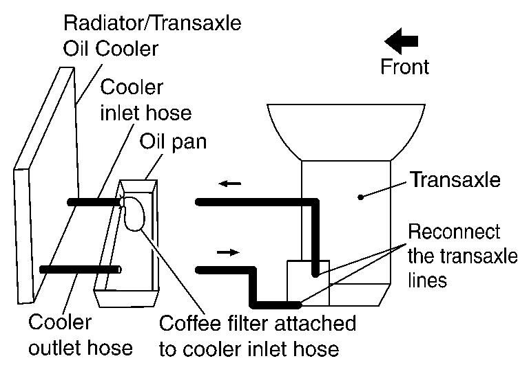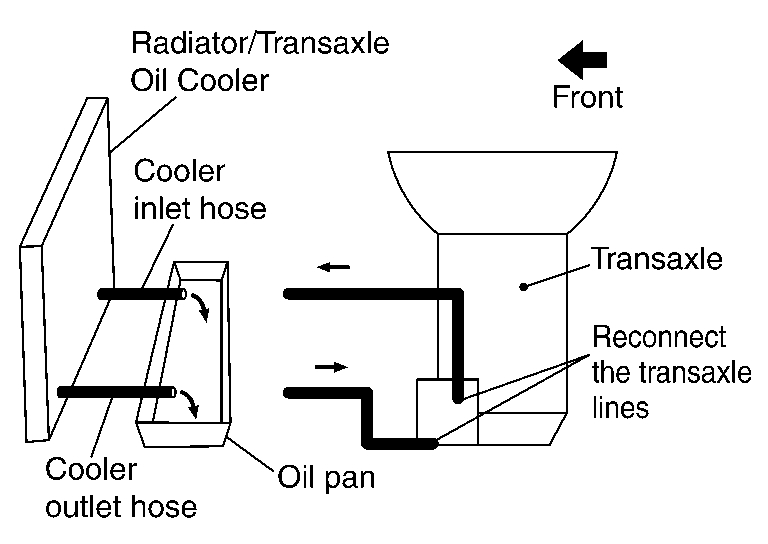 1. Position an oil pan under the transaxle's inlet and outlet cooler hoses.