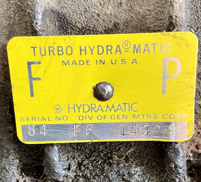 I've already pulled it; here's a pic of the whole thing. I'm pretty sure it's a THM400, but I didn't know if there were any specifics from that tag. Here's a pic of the whole thing.
