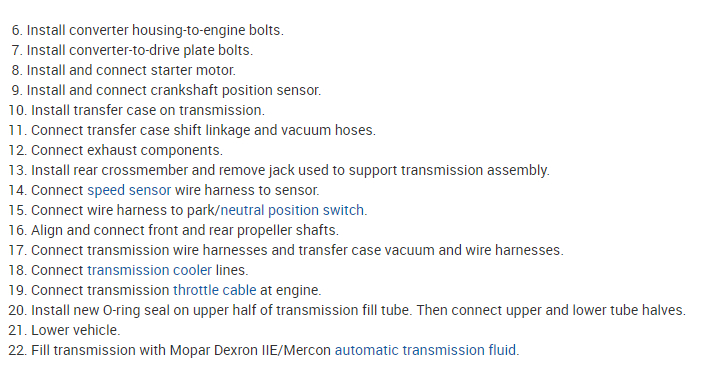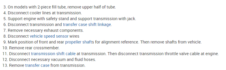 Here is the transmission replacement information you requested. Here is a manual transmission tutorial for you to view. Removing an automatic transmission is similar: