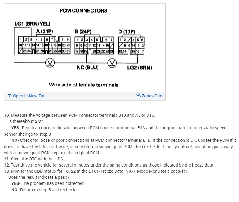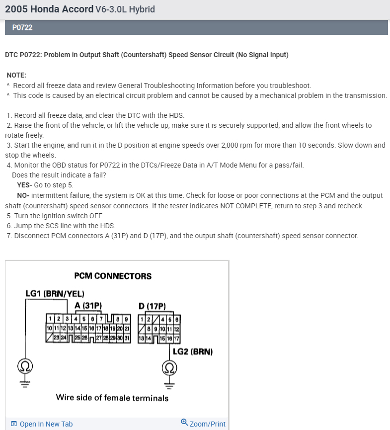 Keep in mind the code P0722 could be due to a wiring issue with the sensor or other components. I have also attached the diagnostics steps for the code below for your reference.