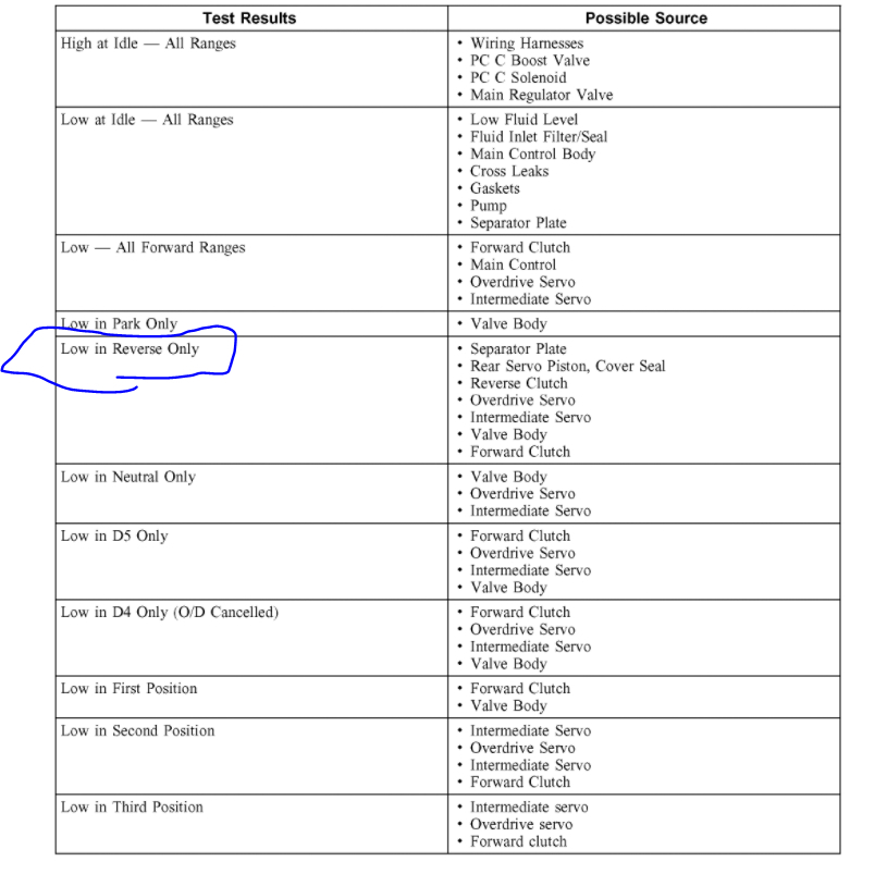 I attached testing for the mainline pressure below to determine if it is an internal issue.