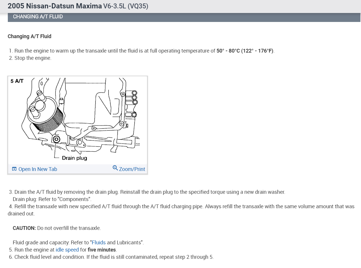 NOTE:Using Automatic Transmission fluid other than Genuine Nissan Matic K ATF will cause deterioration in driveability and automatic transmission durability, and may damage the automatic transmission, which is not covered by the NISSAN new vehicle limited warranty.