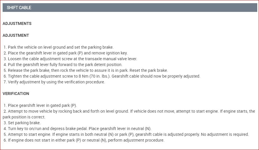 The issue could just be the shifter is out of adjustment. Here is the procedure and where the shifter connects to the transmission. If you open the hood and look on top of the transmission, you will see the cable and lever.