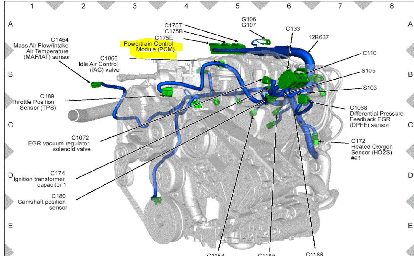The PCM is behind the engine in the firewall.